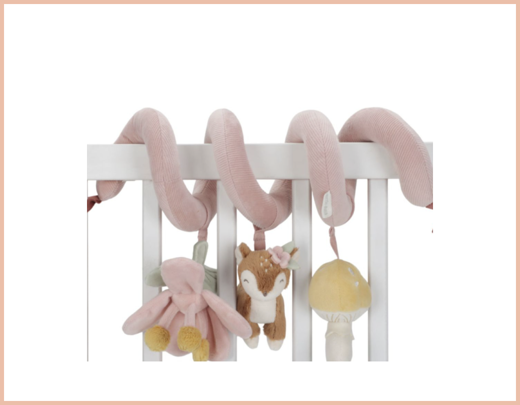 Забавна спирала која е идеална играчка за креветче и количка. Лесно прикачете ја оваа практична играчка на креветче, количка или седиште во автомобил. Ги зајакнува сетилата и ја стимулира координацијата рака-око.