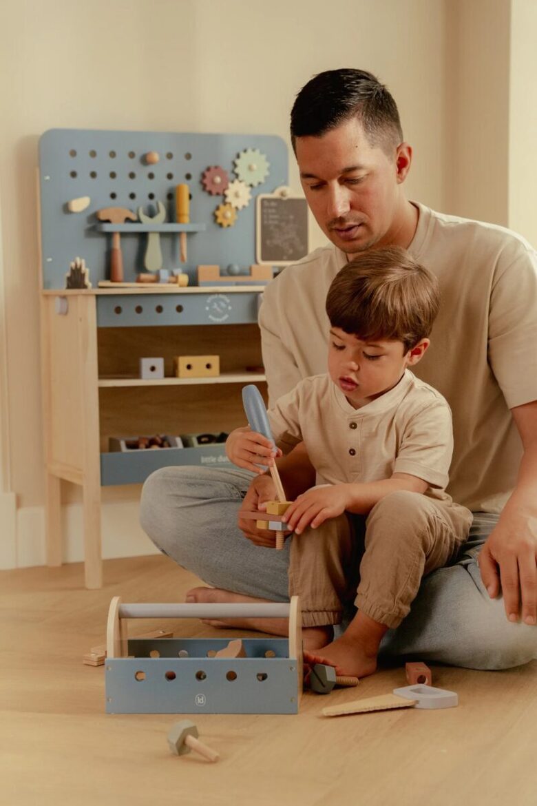 Сетот вклучува различни алатки, меѓу кои и кружна пила, и поттикнува играње улоги, развој на моториката и креативноста.
